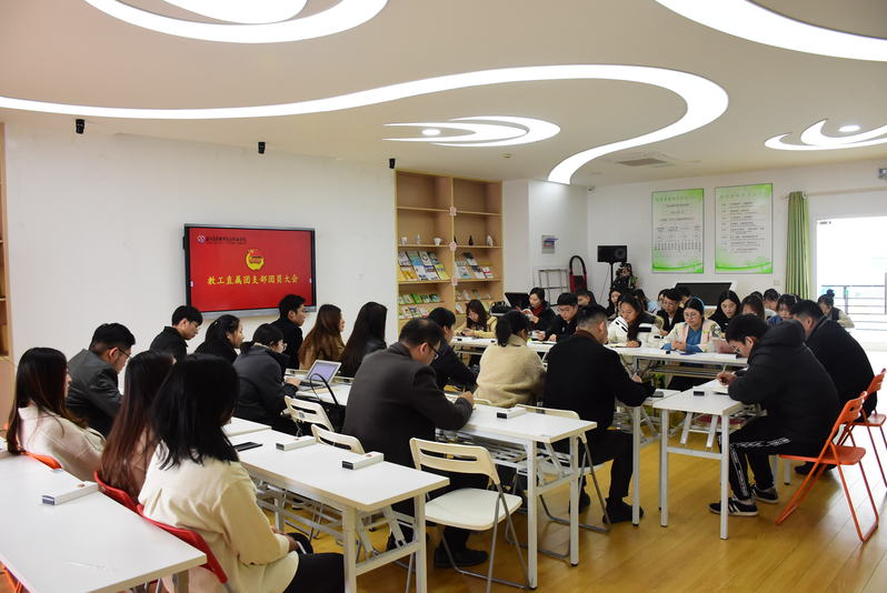 2019年11月26日中午12:40,学校教工直属团支部第一次团员大会在大学生青春健康俱乐部举行,学生处副处长、校团委书记胡赛,各学院分团委书记和教工直属团支部52名团员共同参加会议,会议由教工直属团支部书记王鑫主持。
