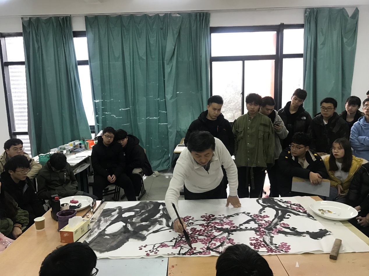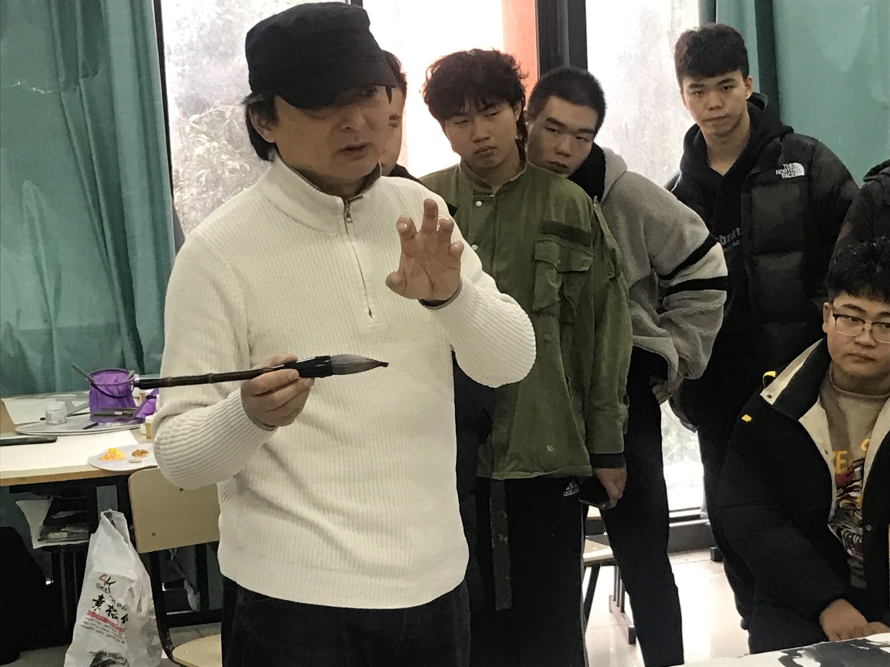 12月18日上午,博士生导师,中国美术家协会会员廖军教授亲临艺术与建筑学院2019级跨专业基础平台课堂,给学生带来了一场生动精彩的中国画精彩示范。