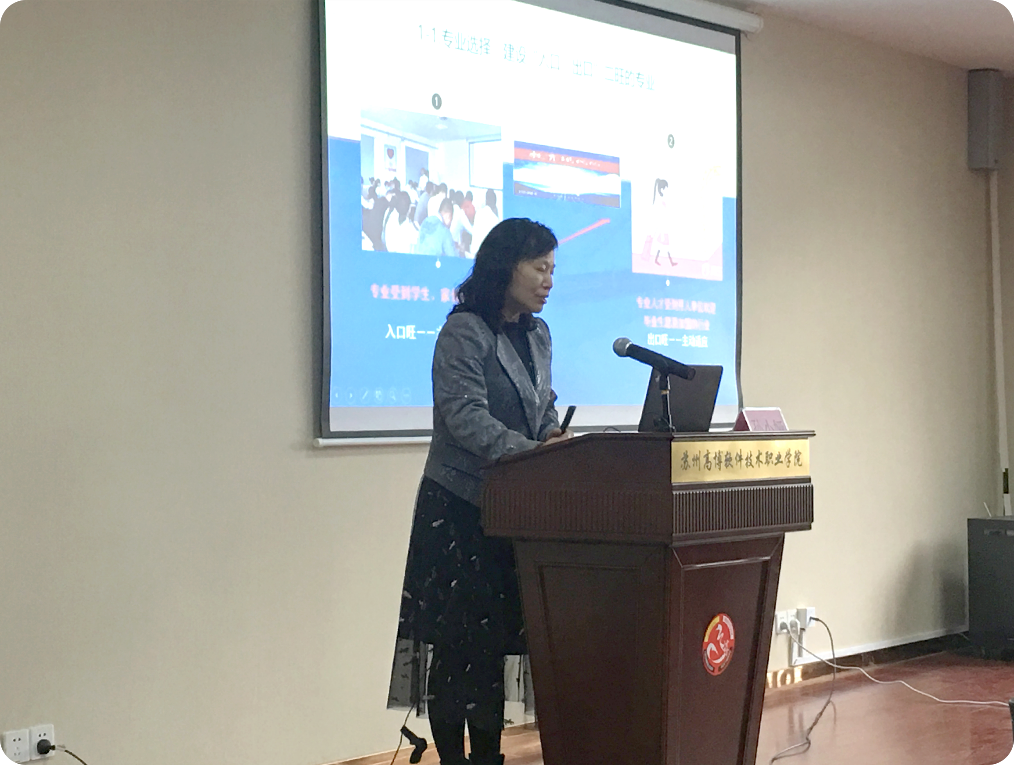 接着,医学与公共服务学院院长孙小娅教授结合个人丰富的职业教育经验,从“专业建设市场调研”、“专业建设思路举措”、“专业教学文件建设”、“专业师资实训建设”、“专业建设发展规划”五个方面全方位地分享了医学院在专业建设工作中积累的经验。