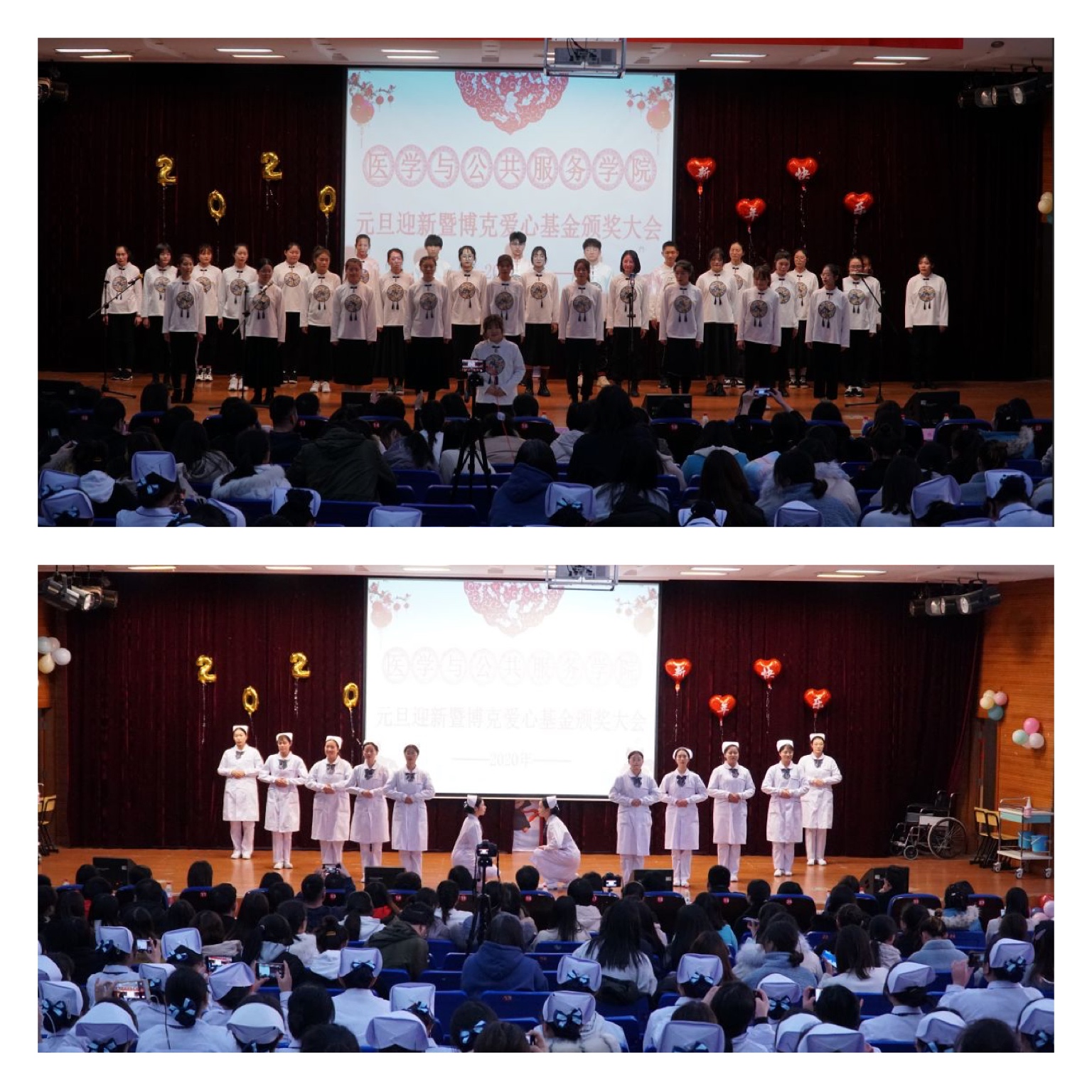 盛世华诞七十载,万众欢喜迎新年!医学与公共服务学院顺利走过2019年的成长之路,迎来2020年新的展望。为迎接19级新生、表彰年度优秀学生、答谢对医学与公共服务学院给予帮助的组织与领导的厚爱,特举办“医学与公共服务学院元旦迎新暨博克爱心基金颁奖大会”。