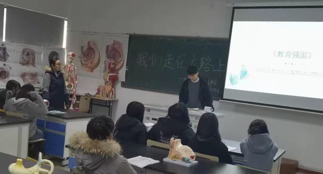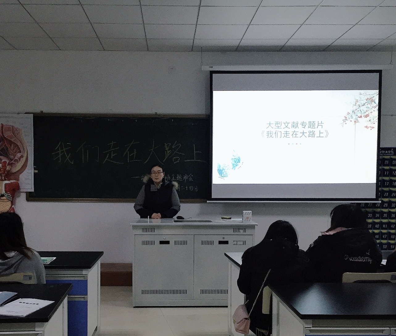 12月24日下午15:30,我院幼管1844班“我们走在大路上”主题班会在4-201教室顺利召开。本次班会由幼管1844班班主任田丹丹老师主持,班会在庄严肃穆的国歌声中落下帷幕。本次班会共分三项议程。通过组织全体同学观看《教育强国》,进一步引导同学们树立了正确的世界观、人生观、价值观,同时加深了同学们的爱国热情和对教育的认识,作为当代大学生,要不忘初心,牢记使命,要以实际行动来践行社会主义核心价值观。