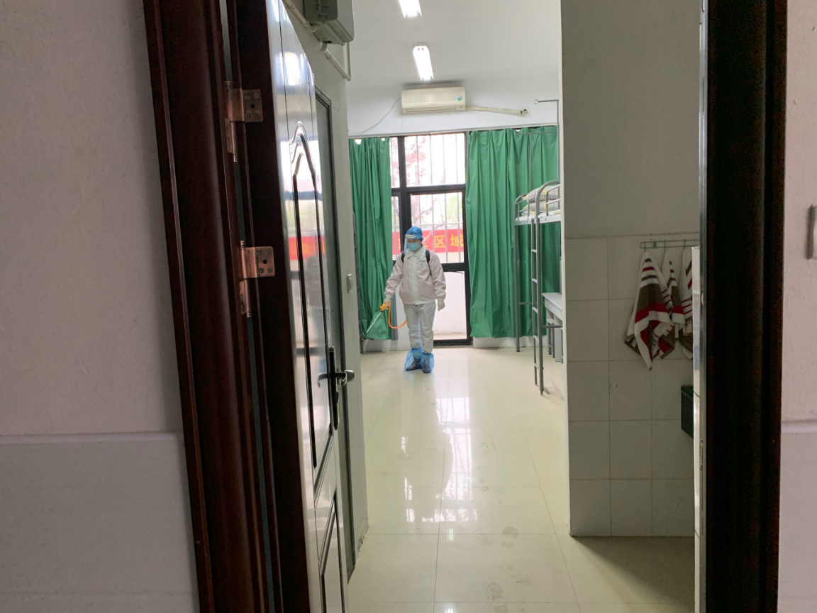 对发热学生宿舍全面消杀,并进行封闭