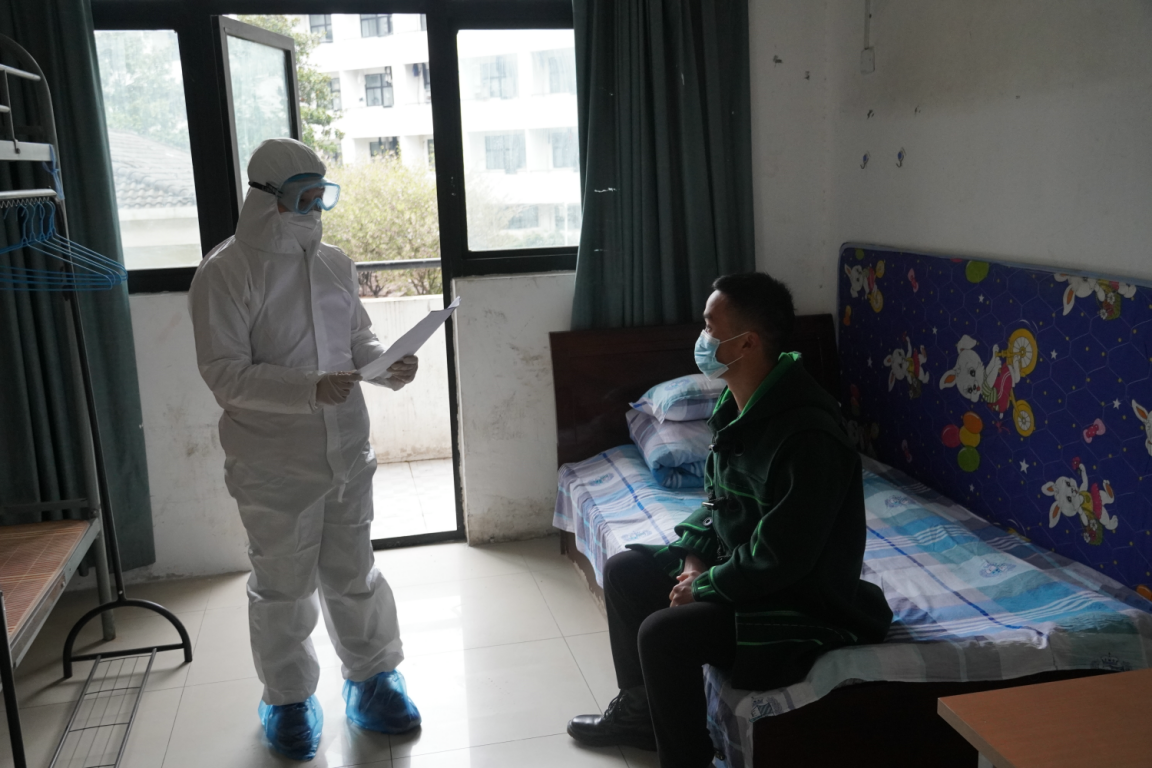 医务人员向隔离人员发放观察对象告知书