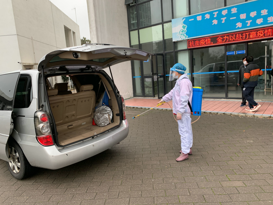 对返回后的疫情防控专用车进行全面消杀