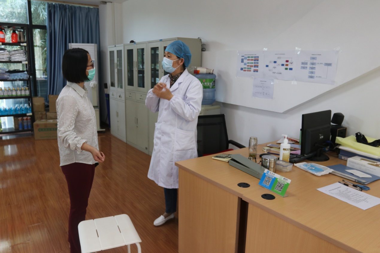 图2:督察组人员查看学校医务室