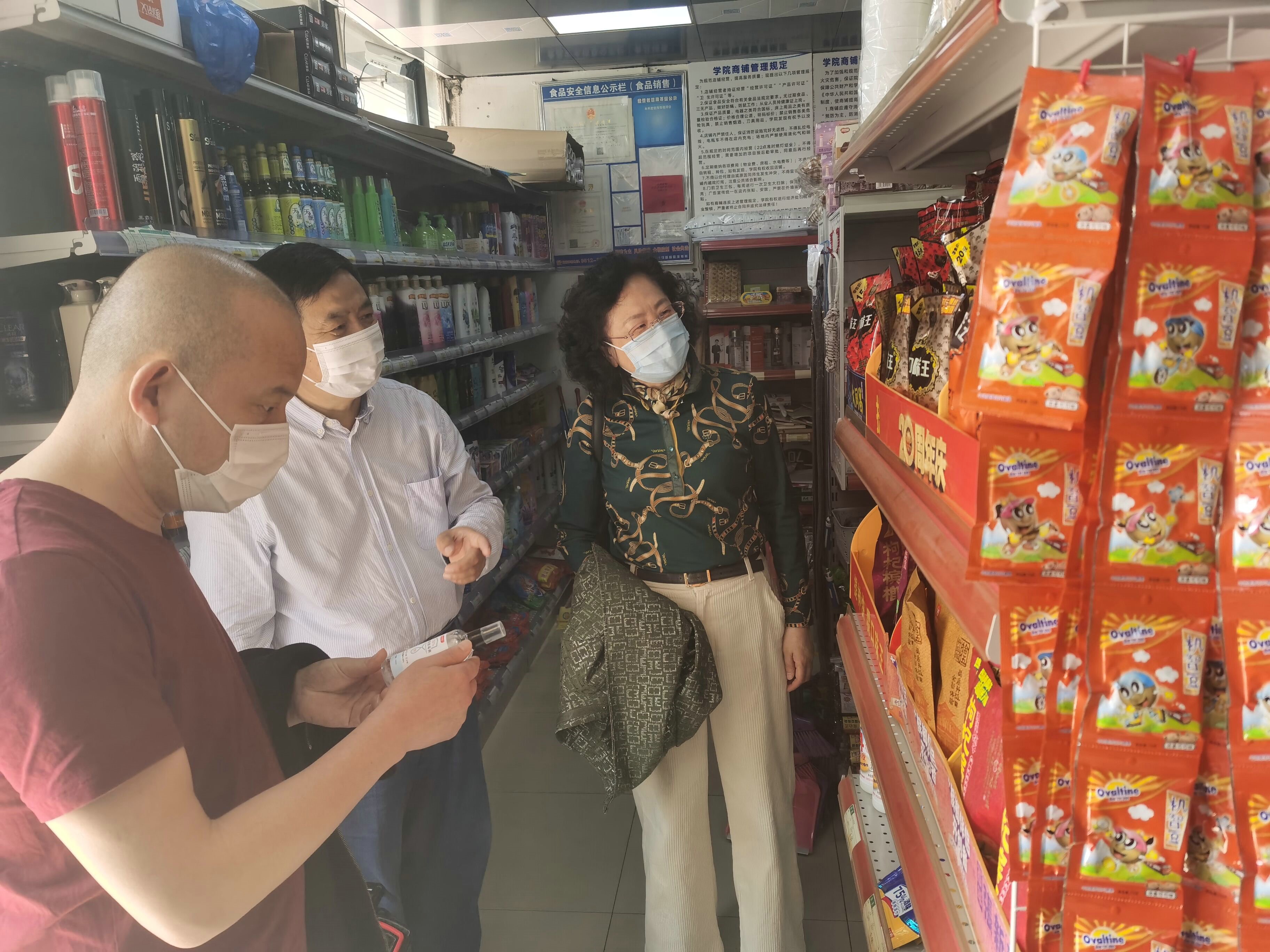 张院长详细检查了各店铺的安全设施和疫情防控物资备货情况,仔细询问了工作人员的体温测量、场所消毒、口罩佩戴等防护管理情况,并对检查中发现的问题现场提出指导意见和整改要求。
