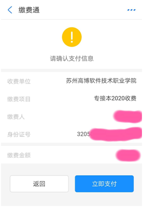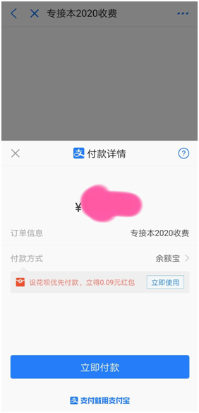 我校2019级专接本、自考助学老生第二年学费缴费工作现已开始。由于疫情原因,本次缴费工作全部线上进行,缴费时间自2020年5月4日至2020年5月24日,缴费对象为2019级全体专接本、自考助学学生。现将线上缴费流程公布如下: