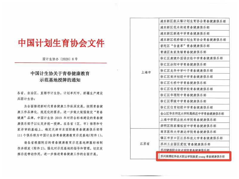 为全面推进新时代青春健康工作纵深发展,按照青春健康工作品牌化、规范化的要求,进一步做大做强做优“青春健康”品牌,中国计生协2019年对符合标准建设的青春健康俱乐部予以认定并统一授牌,在刚刚发布的国计生协办【2020】8号文中,我校微爱young青春健康俱乐部被认定为符合标准建设的国家级青春健康俱乐部,喜获国家级“青春健康教育示范基地”荣誉称号。