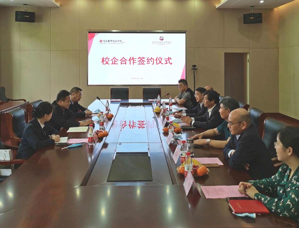 为了进一步强化和落实教育教学改革,积极推进校企深度合作,5月8日下午,苏州高博软件技术职业学院国际商学院、苏州桃园国际度假酒店校企合作签约仪式在我校举行。酒店执行董事兼总经理刘星、总经理助理韩丽萍、行政总监陈鹰;学校副校长陈家颐、副校长张建初、国际商学院院长王则斌、国际商学院副院长郭泉、国际商学院旅游系主任魏向东、国际商学院经济系主任乔桂明等领导出席签约仪式。仪式由校企合作办常务副主任马浩主持。