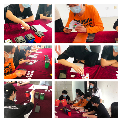 随后,开展了垃圾分类小游戏。分别给每组学生下发20张垃圾卡片,让其对应厨余、可回收、不可回收、有害四个小型垃圾桶进行分类。现场气氛活跃,大家踊跃参与。让大家进一步掌握了垃圾分类的具体方法。