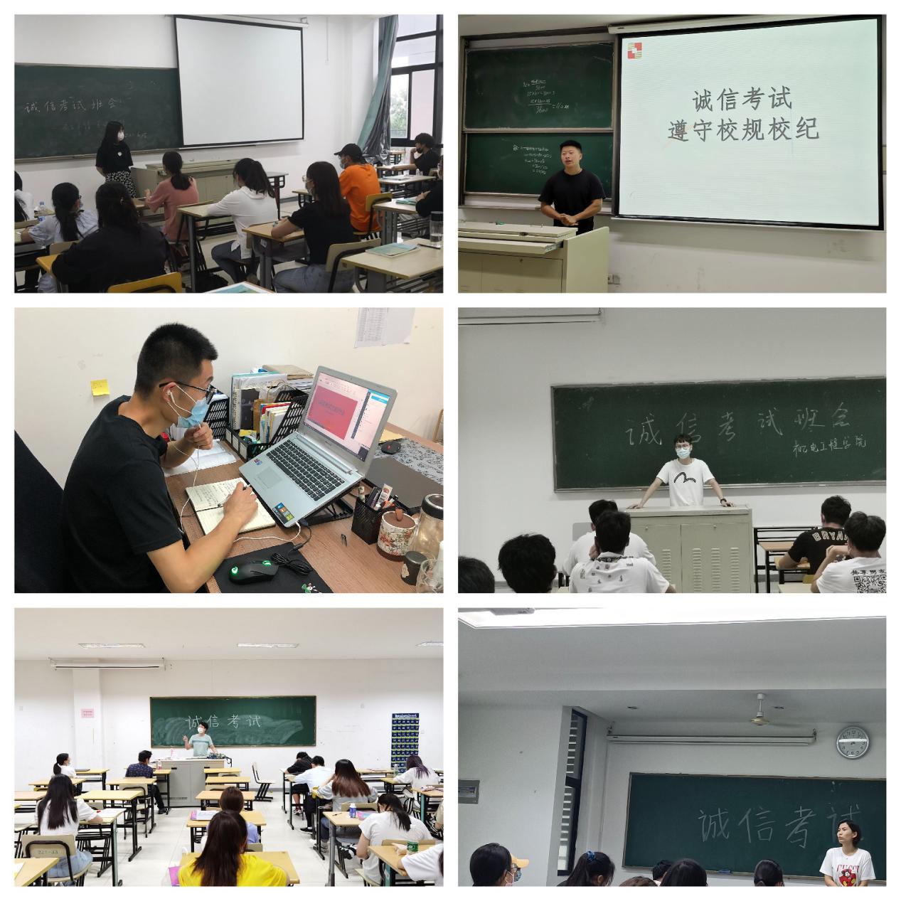 诚实守信是中华民族的传统美德,是一切道德的基础和根本,更是社会赖以生存和发展的基石。期末考试既是一场学习成果的检阅,更是一场道德和诚信的考验。为教育我院学生树立良好的考风考纪,培养学生诚信考试意识。在6月12日至15日,机电工程学院辅导员老师通过线上和线下的形式,组织学生开展了“诚信考试·从我做起”主题教育班会。