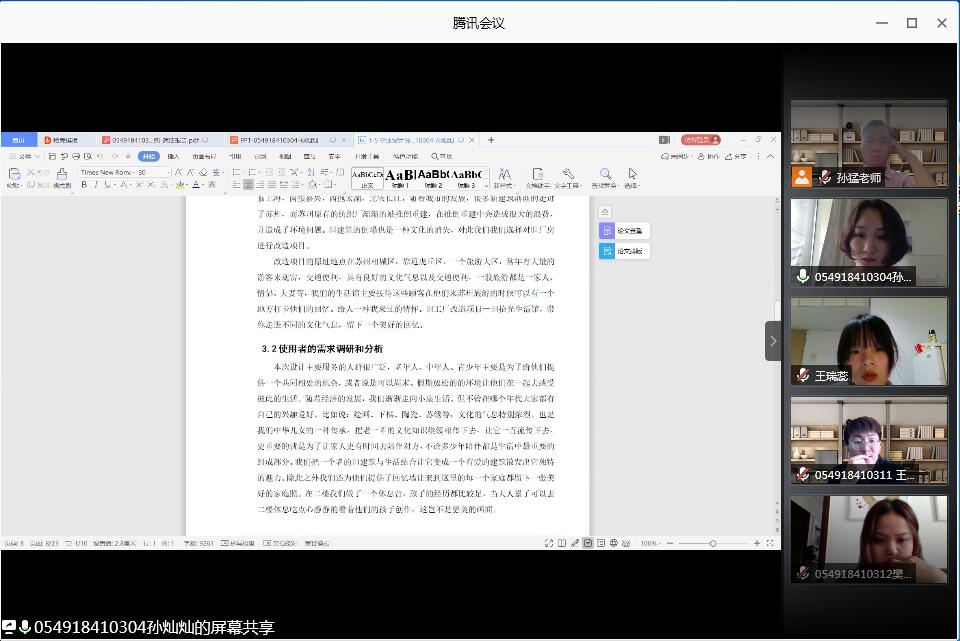 为保障线上答辩工作的顺利有效开展,答辩小组召开会议就线上答辩环境设置、设备使用及答辩流程等做了明确的要求。答辩中,学生以PPT形式展示自己的设计,并做简述汇报。随后答辩教师进行点评、提问,指出存在的问题及修改建议。总体来说学生答辩思路清晰,能够有条理地回答老师提出的问题。整个答辩过程比较顺畅,师生交流融洽,取得了良好的效果,达到了预期的目的。