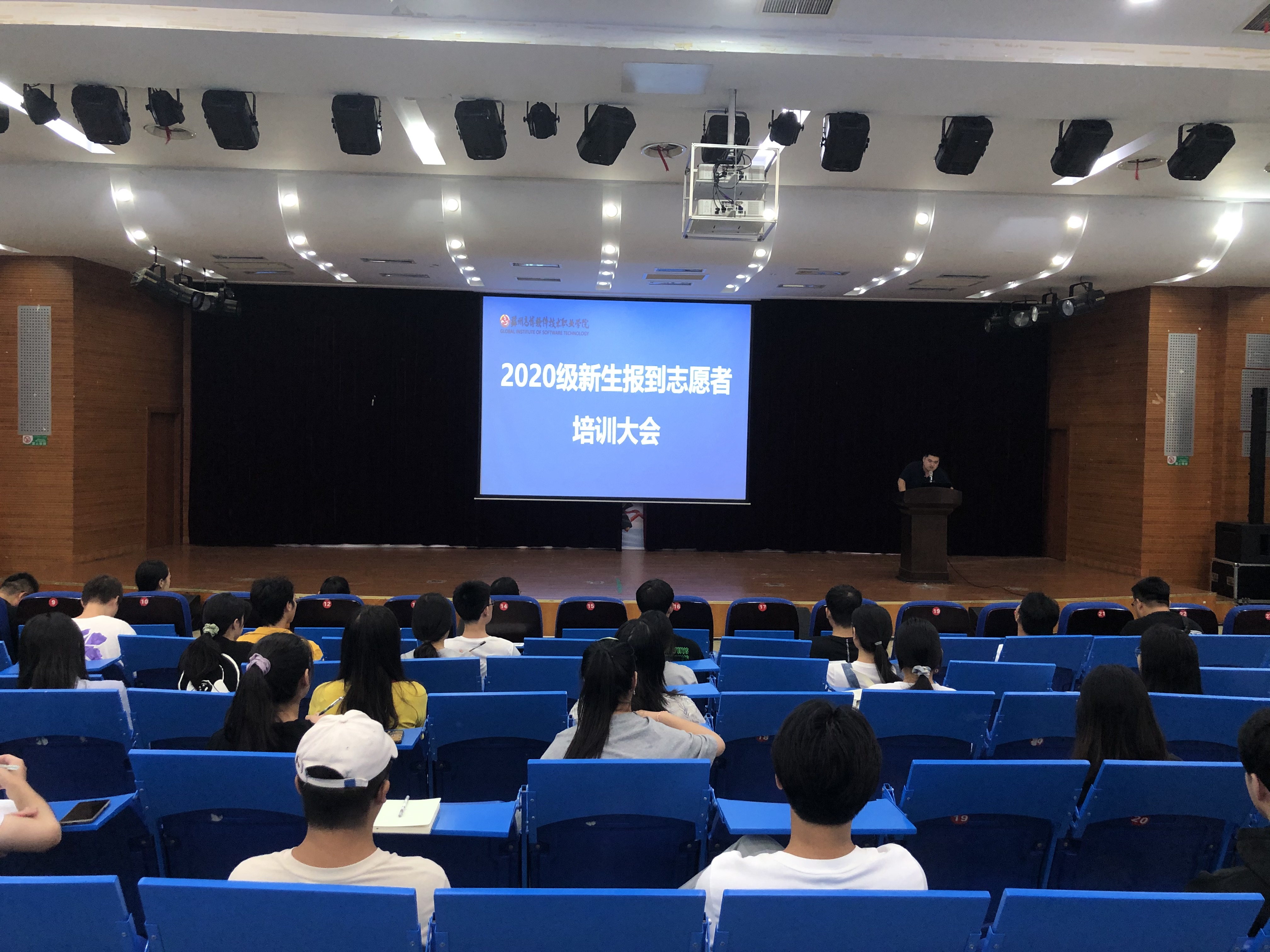 为做到安全、有序、快捷、周到,努力为广大新生营造和谐温馨的入学环境,9月2日晚17:30,学校团委在报告厅举行2020级新生报到志愿者培训大会。学生处副处长、校团委书记胡赛,校团委副书记王鑫、各二级学院分团委书记和70名迎新志愿者共同参加培训。