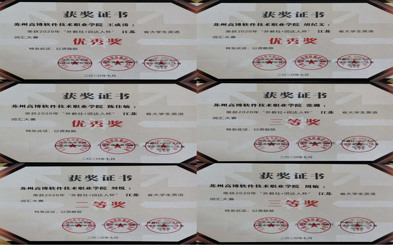 第一届“外教社•词达人杯”江苏省大学生英语词汇大赛被江苏省高等教育学会认定为2020年全省普通高校本专科生学科竞赛省级赛事培育项目,全省报名参赛学生人数近20万。自5月赛事启动以来,人文学院外语系全体英语教师带领参赛学子积极备赛,先后进行两轮模拟测试、初赛和复赛,选拔出参赛词汇达人,并于7月4日19:30至20:30登上全省决赛赛场,经过激烈角逐,获二等奖一名,三等奖两名,优秀奖三名,黄琼、刘洋、卢春林、马乐乐四位老师获得优秀指导教师称号。特此恭贺!