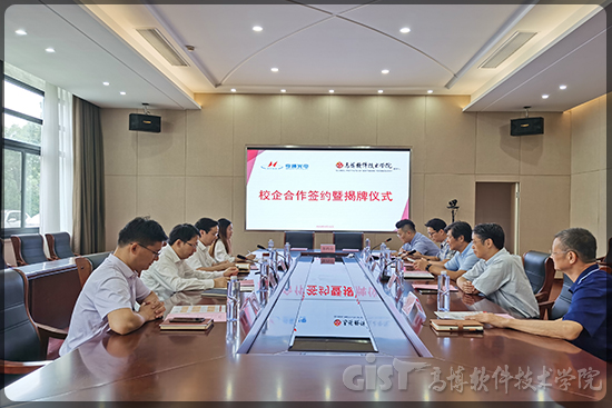 张建初副校长、李谷村副书记代表双方签署协议,此次仪式还为“亨通企业学院”、“高博—亨通网络空间安全实训基地”、“工业互联网及安全实训室”揭牌。(校企合作办)