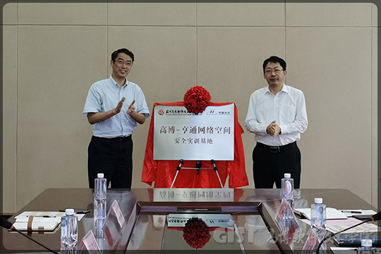 张建初副校长、陈夏裕总经理共同为“高博—亨通网络空间安全实训基地”揭牌
