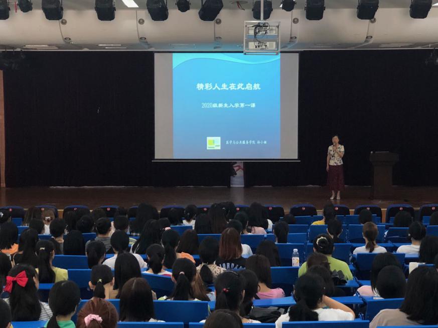报到结束后,学院迅速组织开展了入学教育活动,帮助新生快速适应大学生活,充分了解自己所学专业。9月8日上午,医学与公共服务学院院长孙小娅给2020级全体新生上了“精彩人生在此起航”入学第一课。孙院长首先欢迎2020级新生加盟医学与公共服务学院,感谢同学们和家长对学校、学院的认可与信任;我们将遵循学院“立德树人、文化育人、特色强人、夯实基础、强化实践、注重创新”的教育理念,全员、全程、全方位做好教学、服务、引导、帮助工作;希望2020级新生学会规划梦想,懂得广学宽思,做到知行合一,在高博校园雕琢属于自己的精彩人生。