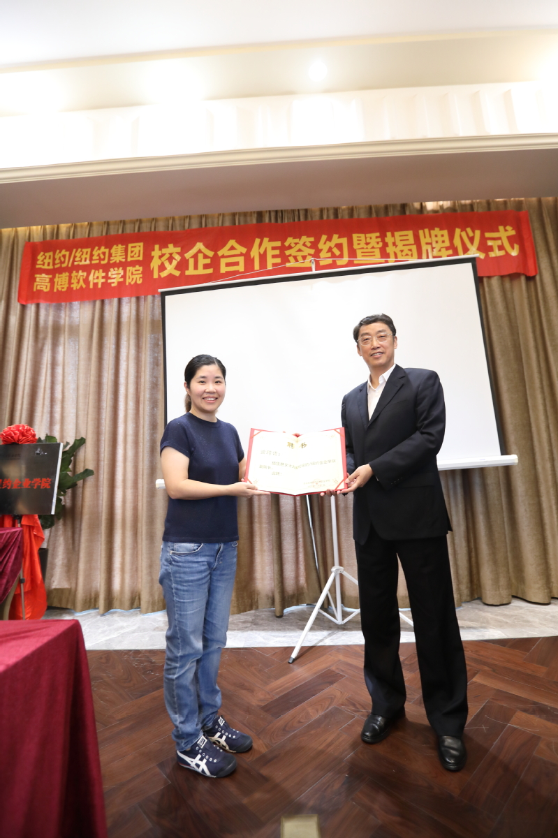 此次仪式,张建初副校长代表学校为杨佳琳总经理颁发聘书、徐雷院长与罗小安总监共同为企业学院揭牌,学校一行在公司领导的带领下,参观了纽约纽约集团。 (校企合作办公室)