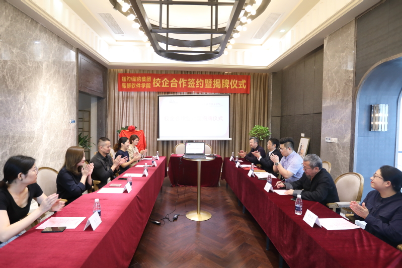 9月21日上午,苏州高博软件技术职业学院——纽约/纽约集团校企合作签约暨揭牌仪式在纽约/纽约集团李公堤分店举行。学校副校长张建初、艺术与建筑学院院长徐雷、副院长张斌、校企合作办主任马浩等,集团总经理杨佳琳、技术总监罗小安、人力资源主管吴梦迪等出席仪式,共同见证“纽约/纽约企业学院”的成立。
