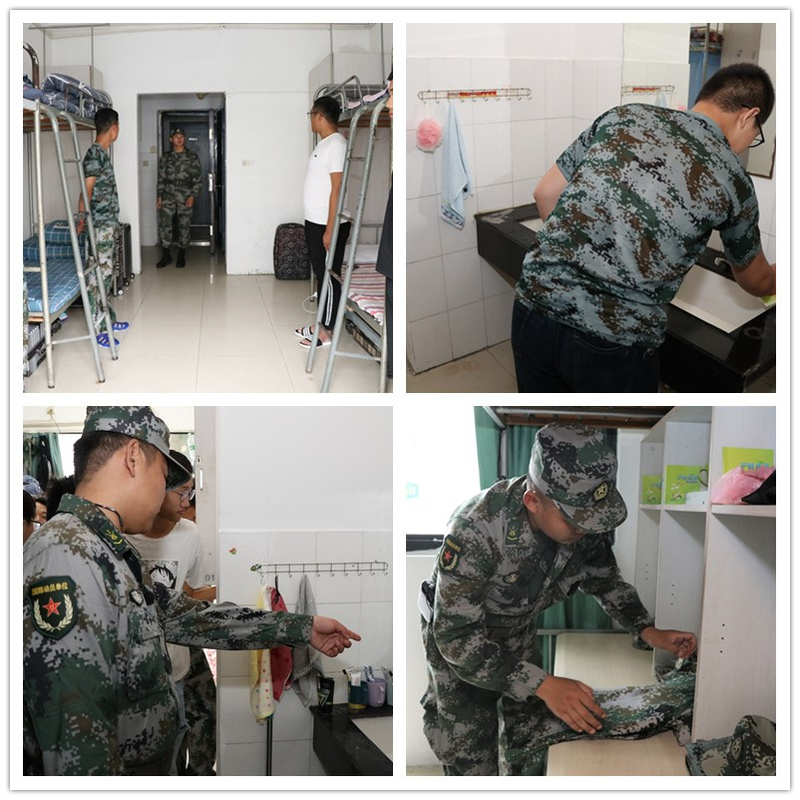 上午天气阴雨交加,各宿舍内务整理工作也在紧张有序地进行。为引导新生养成良好的个人生活习惯,营造整洁舒适的宿舍环境,教官对学生提出了严格地要求,向学生们演示了军人的内务标准,详细讲解并示范了叠被子、摆放洗漱用具、椅子、行李等摆放位置和方法。为整齐划一,辅导员们也对内务整理提出了严格地要求,所有墙面粘贴的小饰品全部清理,宿舍内死角平面都彻底擦洗干净,对宿舍地面也用清洁剂打扫得干净整洁。辅导员坚持每天检查一次内务,对各个宿舍高标准,严要求。经过师生的共同努力,每个宿舍都窗明几净,焕然一新。