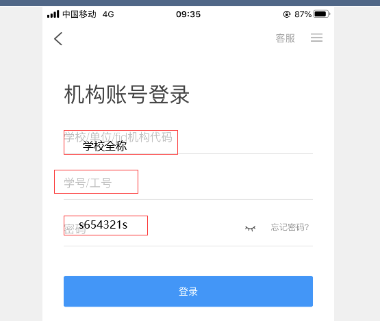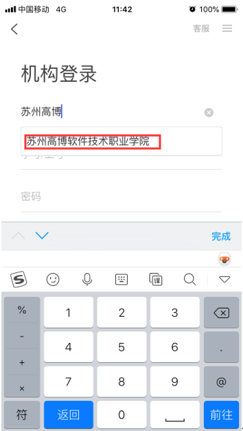 登录方式二:如图5,在【学校/单位】一栏输入【苏州高博软件技术职业学院】(学校名称一定要写全!);在【学号/工号】一栏输入学号;在【密码】一栏输入密码(初始密码s654321s)