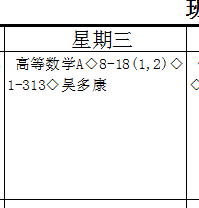 课程名称:【高等数学A】;上课时间:【8-18(1,2)】表示第8-18周周三第1、2两节上课;任课教师【吴多康】;上课地点:【1-313】。