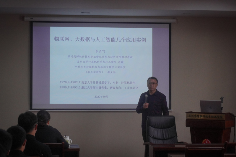 2020年10月27日上午,信息与软件学院大一新生代表及教师来到行政楼215学术报告厅,聆听了一场题为“物联网、大数据与人工智能几个应用实例”的精彩讲座。