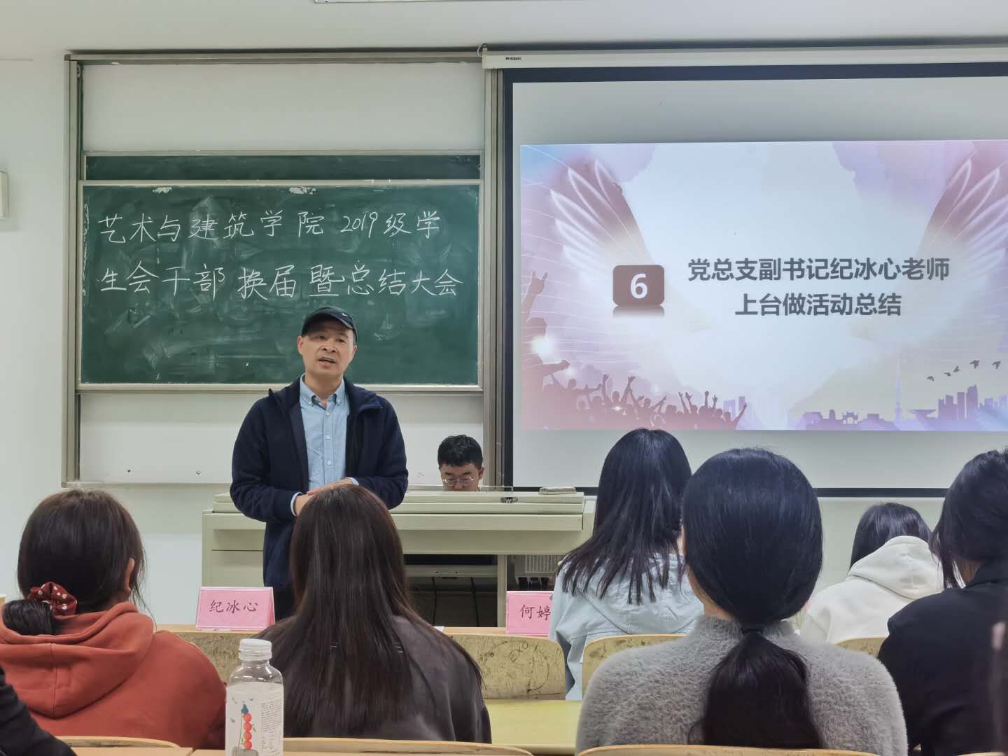 10月26日晚18点30,艺术与建筑学院团委学生会换届暨总结大会在教学楼1-313阶梯教室顺利召开。我院党总支副书记纪冰心老师、分团委书记何婷婷老师、辅导员方超、朱辰燕老师,以及我院48名学生出席了本次大会。