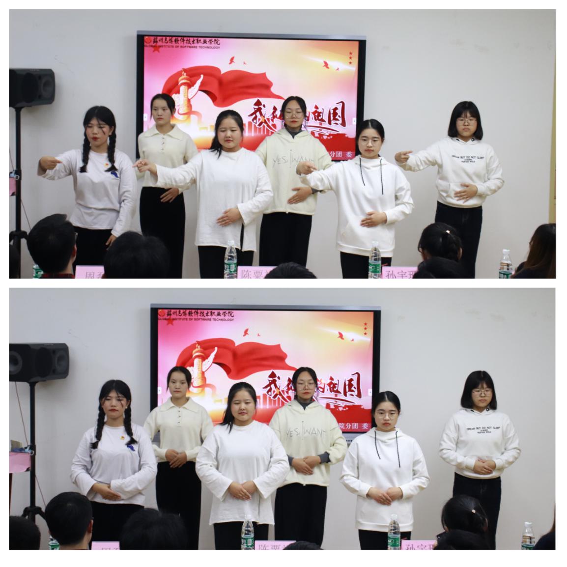 活动伊始,机电工程学院青年学习社表演《我和我的祖国》手语操。