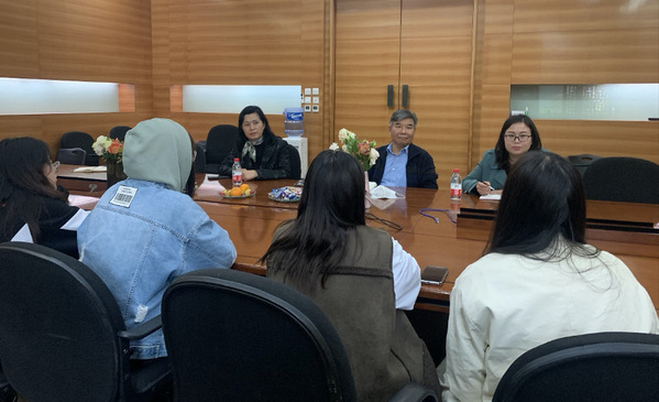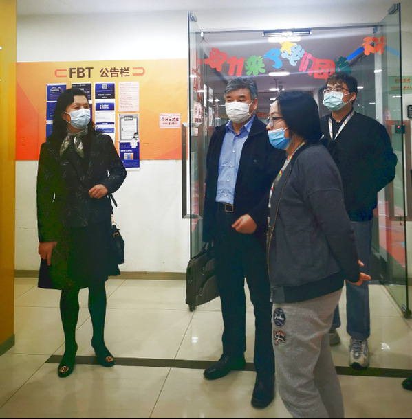 座谈结束后,学校领导又与部分实训学生见面,当面了解了学生目前实训遇到的困难,陆霞处长和王则斌院长代表学校对实训学生表示慰问,耐心告知已经实施和准备实施的解决方案,并对学生克服困难努力工作的态度表示了充分的肯定。