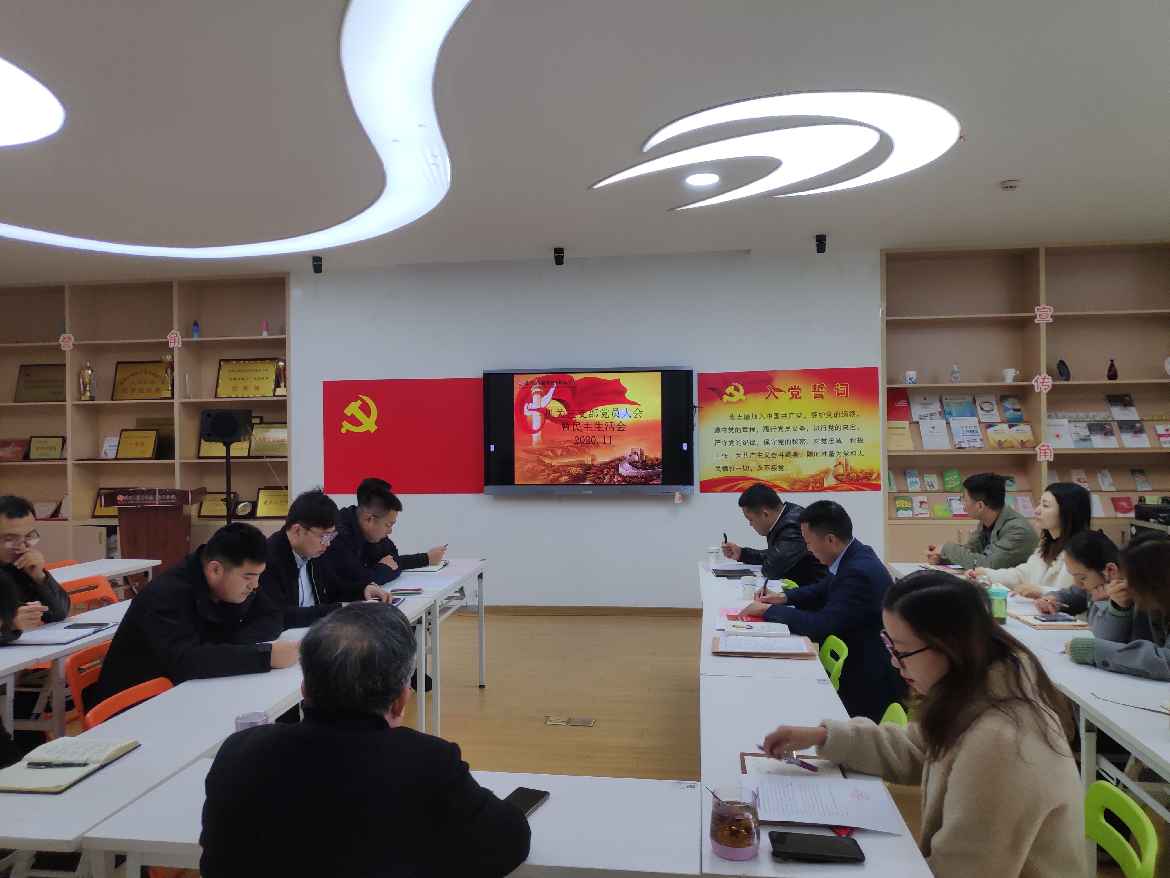2020年11月23日上午9点机关三支部在学院大学生健康活动中心,组织召开支部党员大会暨民主生活会,会议由支部书记张纵林同志主持,学院党委副书记、副院长徐子良同志及支部全体党员参加会议。大会分两个部分举行。