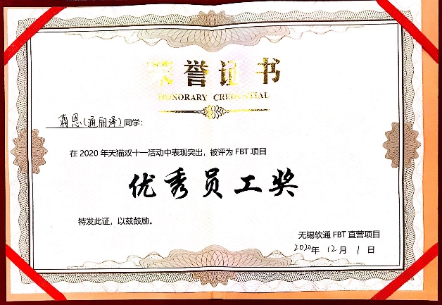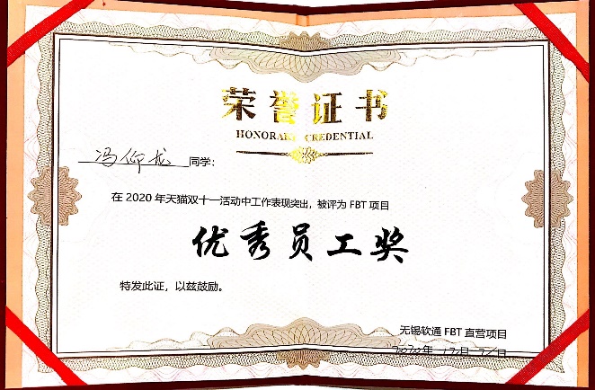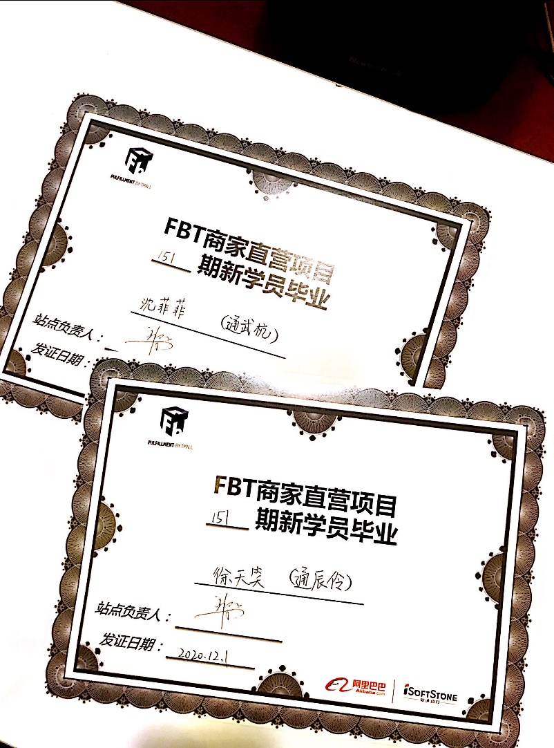 本环节中,企业方领导为学生们颁发了“FBT商家直营项目151期新学员毕业证书”,并祝贺每位同学顺利毕业;校方领导陆霞处长为四位表现突出的优秀学生颁发“优秀员工奖”。