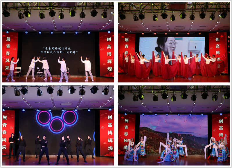 晚会由二级学院分团委带来《舞蹈串烧》拉开了帷幕。茉莉花开逢盛世,茉莉时节香满堂,伴随着熟悉的民间音乐响起时,伞舞《茉莉花开》翩翩而来,舞者将中国古典舞、中国传统文化融入舞蹈中;《抬龙王》是陕北的一种民俗活动,后改编为山东秧歌,舞者跳出了积极向上的力量,从中感受到了独特的美感;情景舞《好想爱这个世界啊》演绎出生活温暖,世间美好,笑容绽放,去拥抱多彩的世界;《流行歌曲串烧》歌曲悦耳动听,释放青春力量,引起全场共鸣,掀起了晚会的高潮;有你有我有他,没有神的光环,你我生而平凡,舞蹈《只要平凡》表达出握紧自己的平凡,努力向阳而生的生活态度;动感欢快的爵士舞《青春女孩》,动感的音乐,欢快的舞蹈,展现出一个青春洋溢的舞台;70年前,为保家卫国,中国人民志愿军与强敌进行了艰苦卓绝的浴血奋战!他们用青春生命,缔造了一代中国人的伟大与光荣,时长三分钟的《为了和平》宣传片,点燃了全体高博学子心中的爱国主义情怀;藏族舞《唱支山歌给党听》大气磅礴,气势恢宏,向亲爱的党献出最真挚的爱;民间舞《东方红》以鲜明感人的艺术形式追溯了一种不畏列强、坚韧不屈、生命不息、奋斗不止的民族精神;路途漫漫,没有一个冬天不可逾越,也没有一个春天不会到来,抗疫舞蹈《重生》,致敬所有奋战一线的白衣天使;萧瑟吴江枫叶浓,寒山姑苏掩葱茏。一袭旗袍染一树清风,两袖清风诉绝世风雅,旗袍舞《苏州好风光》轻盈飘逸,婉约风雅,尽显苏州水乡的诗画风情;晚会的最后,合唱《星辰大海 我们走在大路上》,“向前进!向前进!”高博学子意气风发,斗志昂扬,现场氛围热烈,徐院长情到深处,与演职人员和观众互动起来,跟着节奏即兴指挥,观众热情高涨,跟随旋律合唱,展现了高博学子的青春风采,将晚会推向了最高潮!整场晚会精彩纷呈,表演形式丰富,内容新颖,晚会中掌声不断,直播间好评如潮,高潮迭起,取得了圆满成功。