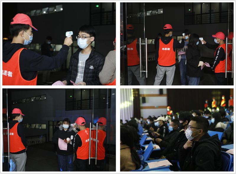根据疫情防控要求,工作人员于观众入场前严格测量体温,在报告厅入口设置检查防线,同时要求观众全程戴口罩。活动现场秩序井然,大家积极配合,圆满地完成了2021年迎新晚会的防疫工作。