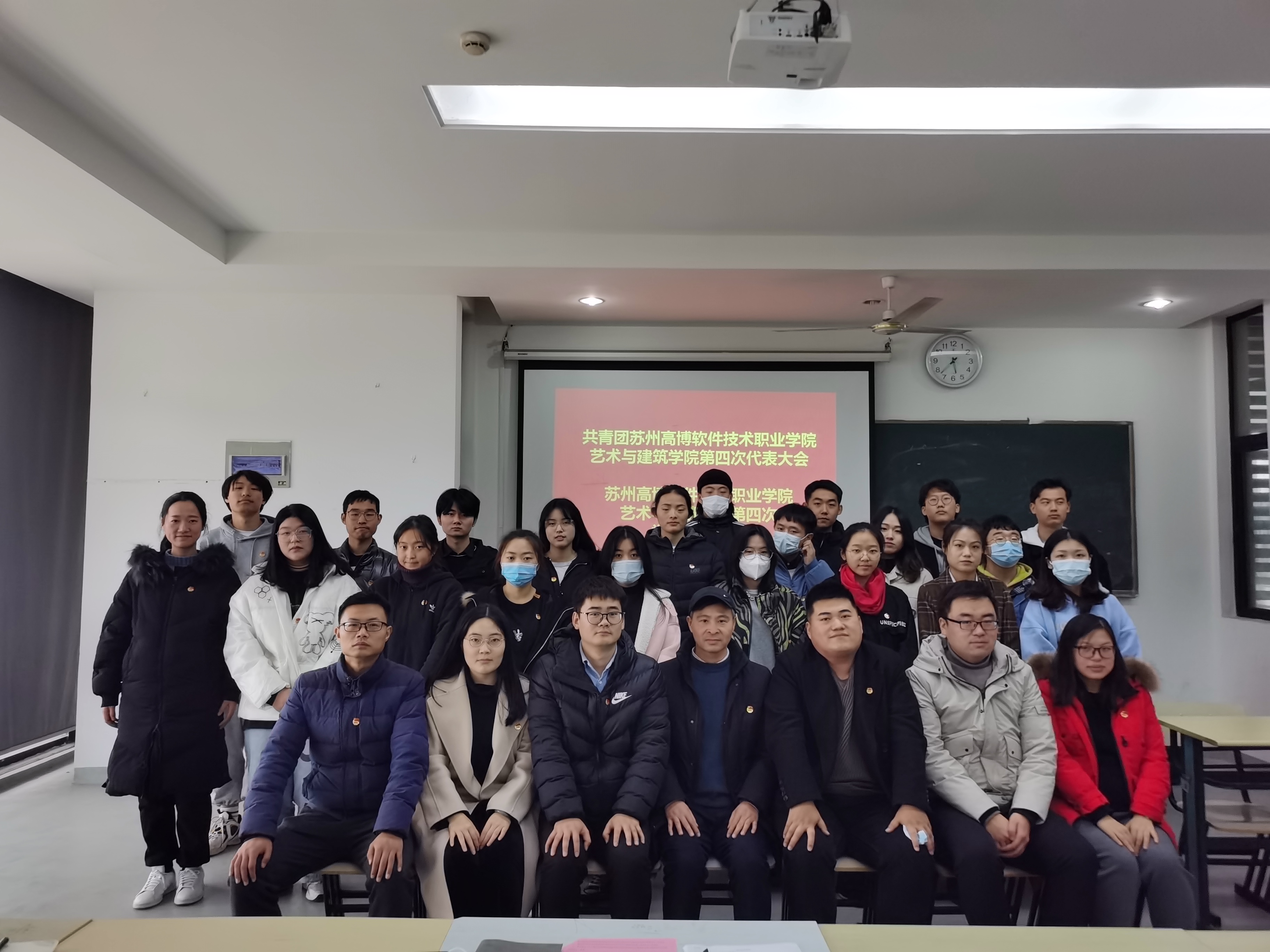 12月18日中午12:40,艺术与建筑学院团委在1-520教室召开共青团苏州高博软件技术职业学院艺术与建筑学院第四次代表大会、苏州高博软件技术职业学院艺术与建筑学院第四次学生代表大会。我校团委书记胡赛老师、团委副书记王鑫老师、我院党总支副书记纪冰心老师、分团委书记何婷婷老师、院全体辅导员、校学生会代表束馨怡同学以及我院21名学生代表参加了会议。