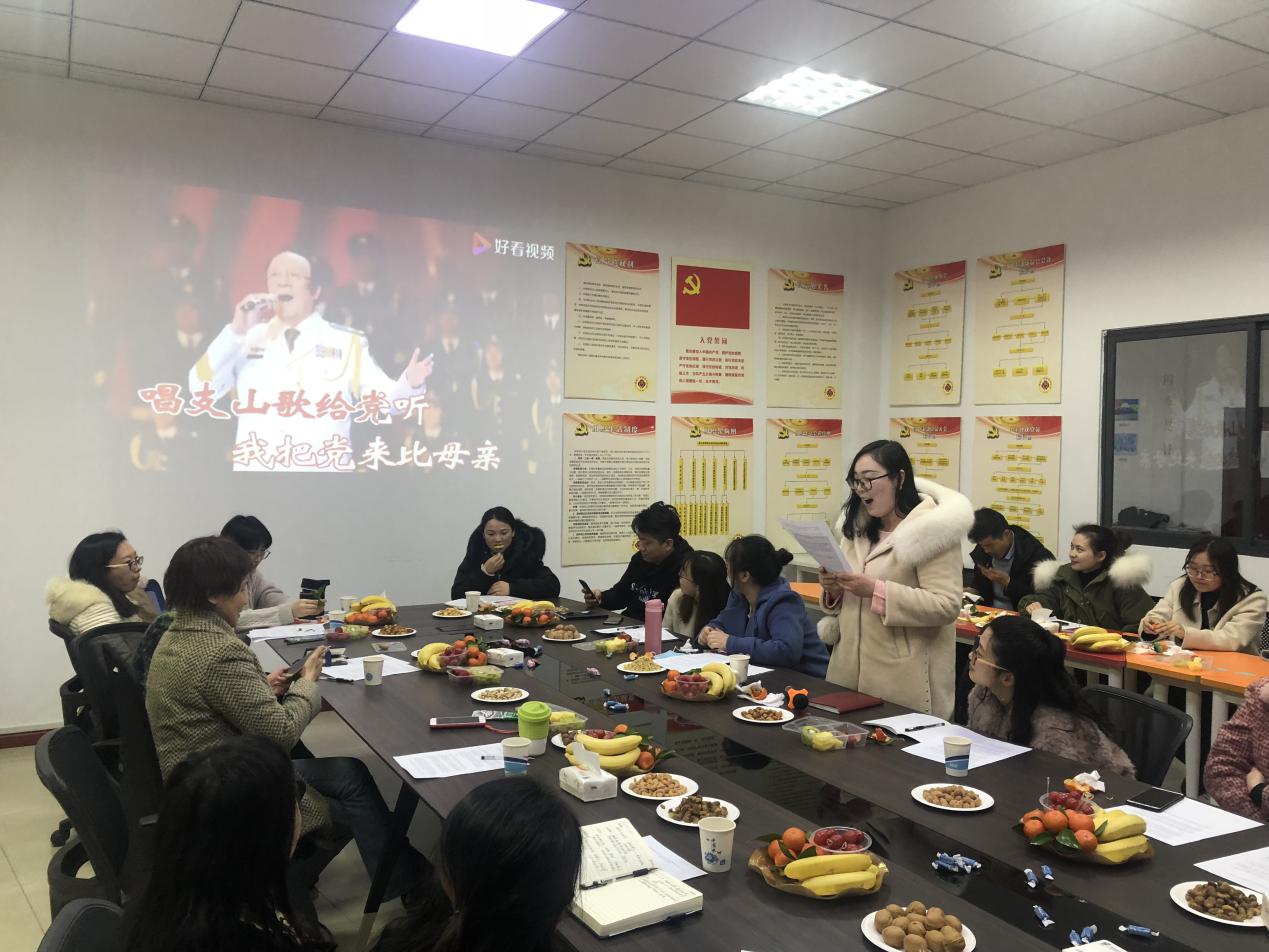 紧接着,集中学习了习近平总书记在联合国大会纪念北京世界妇女大会25周年高级别会议上的重要讲话精神。品着茶点和水果,大家一起畅谈工作学习、家庭和生活,感叹女性的获得感、幸福感和安全感正在全方位的提升,北京世界妇女大会通过的《北京宣言》和《行动纲领》为妇女描绘的美好前景,在中华大地正一步步成为现实。幼管专业田丹丹老师献唱一首《唱支山歌给党听》将活动推向了高潮,“唱支山歌给党听,我把党来比母亲……”,熟悉的旋律,深情的演唱,动听的歌声,表达出现场所有人对党的衷心祝福和美好祝愿,共贺党的百年华诞!