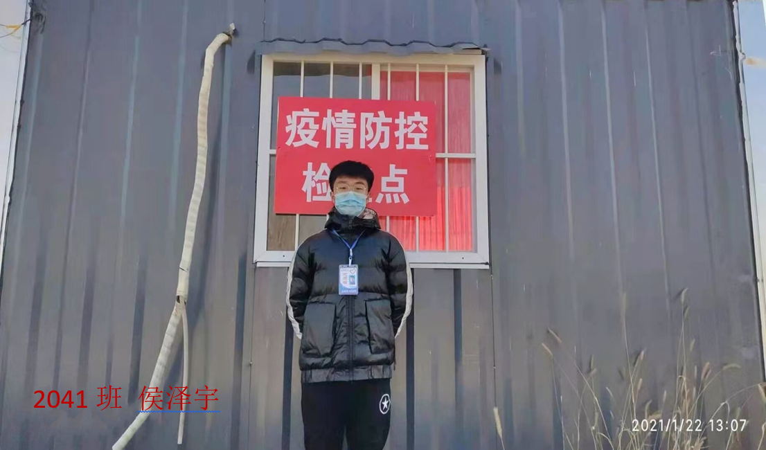 “现在正是国家面临困难的时候,我们新时代大学生更应该行动起来,加入到疫情防控队伍中去,用实际行动诠释当代年轻人的担当,积极投身于这场没有硝烟的战‘疫’当中,与家乡人民一起抗‘疫’!中国加油!”这是2040班刘亚非的心声。在内蒙古乌兰察布市疫情防控工作开展后,他第一时间向当地居委会提出了做志愿者的申请。每天他都会在村口排查登记出入车辆的信息,劝导村民不外出、不扎堆、勤洗手、勤消毒,用认真热情的状态身体力行地践行自己的心声。