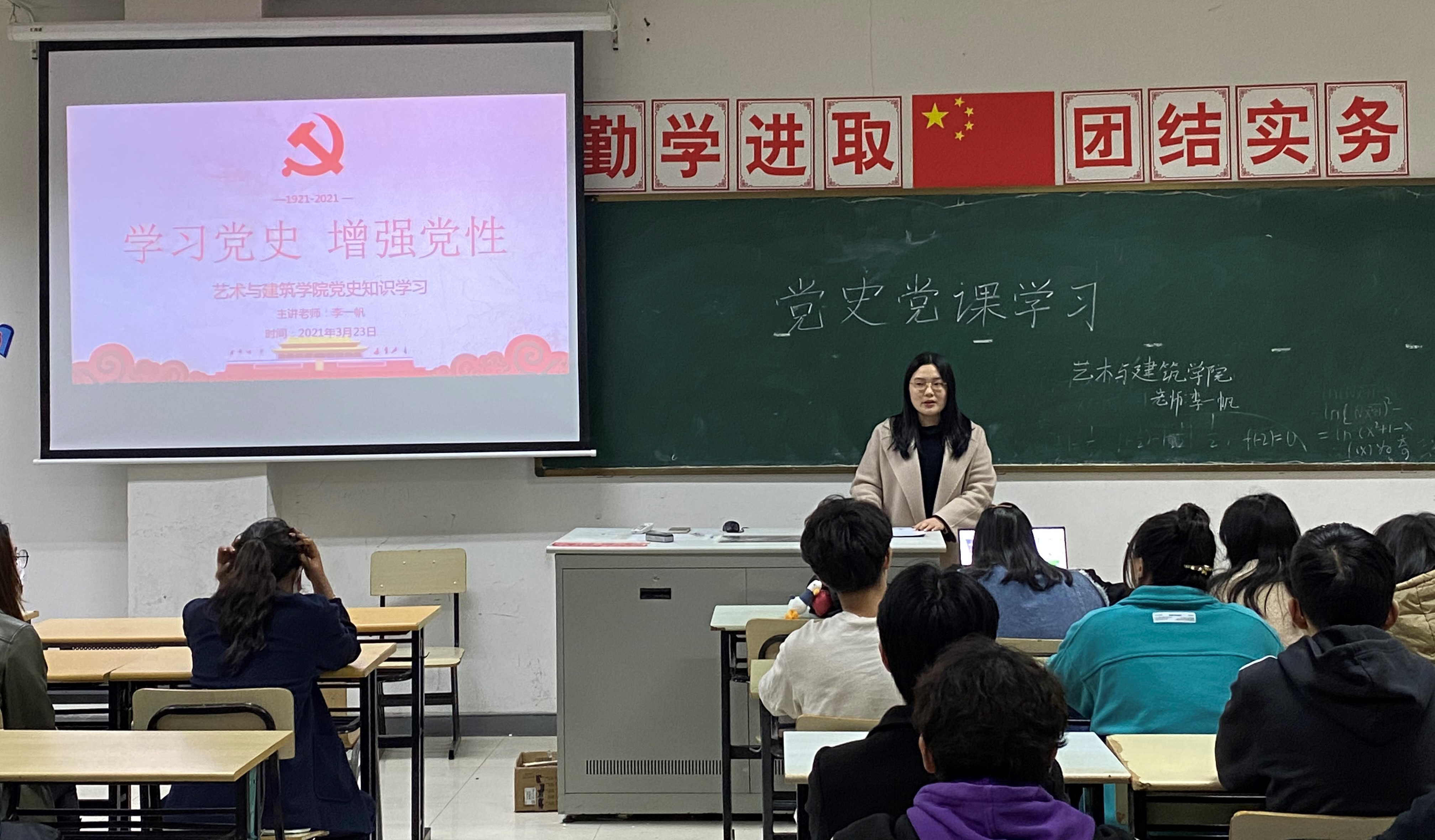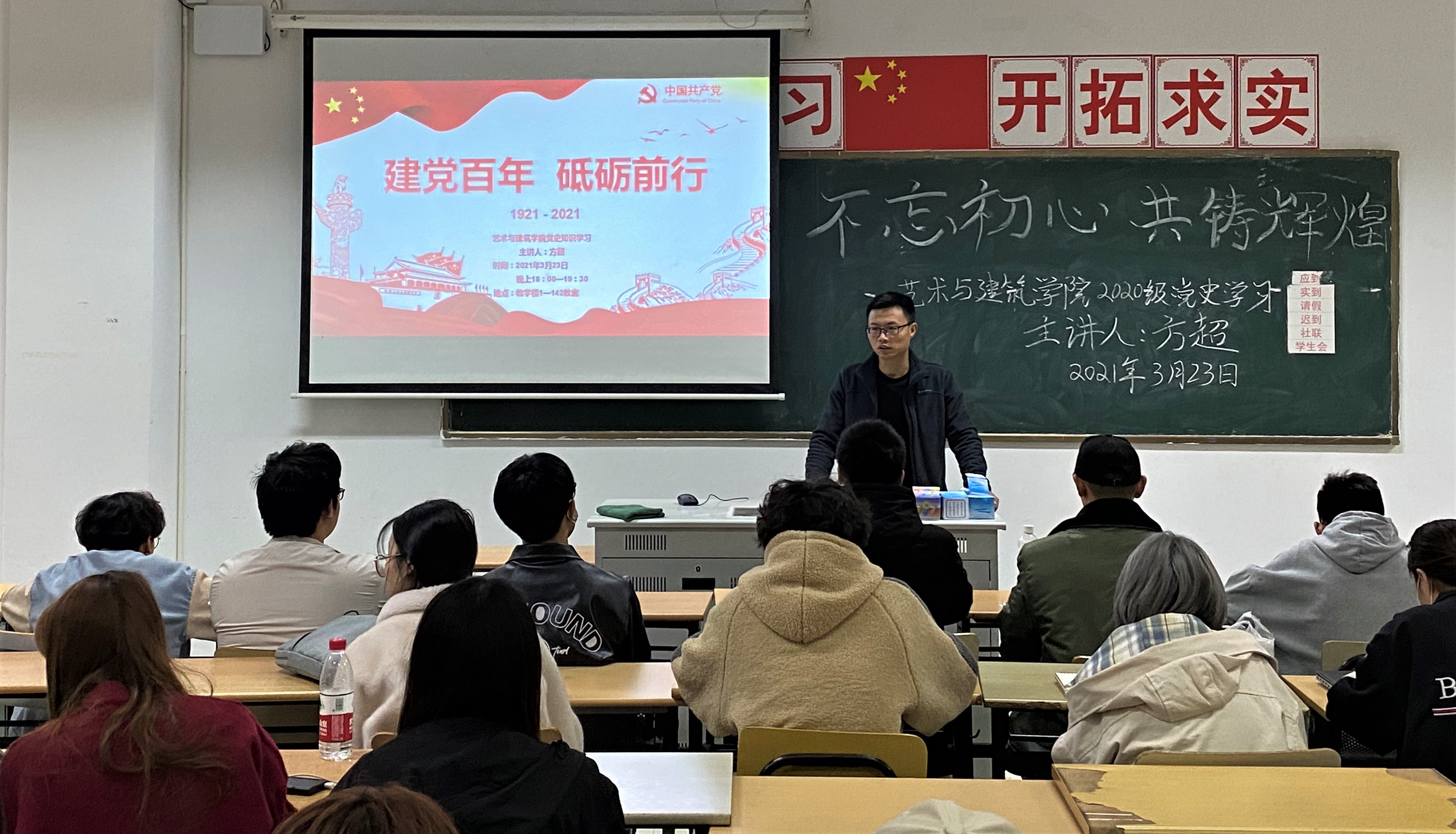 为庆祝中国共产党成立100周年,深入贯彻落实我校召开的党史学习教育动员大会精神,艺术与建筑学院学生党支部于3月23日组织全体党员老师走进课堂,开展党史学习教育专题党课,学生党支部所有学生党员和入党积极分子参加了本次党课。