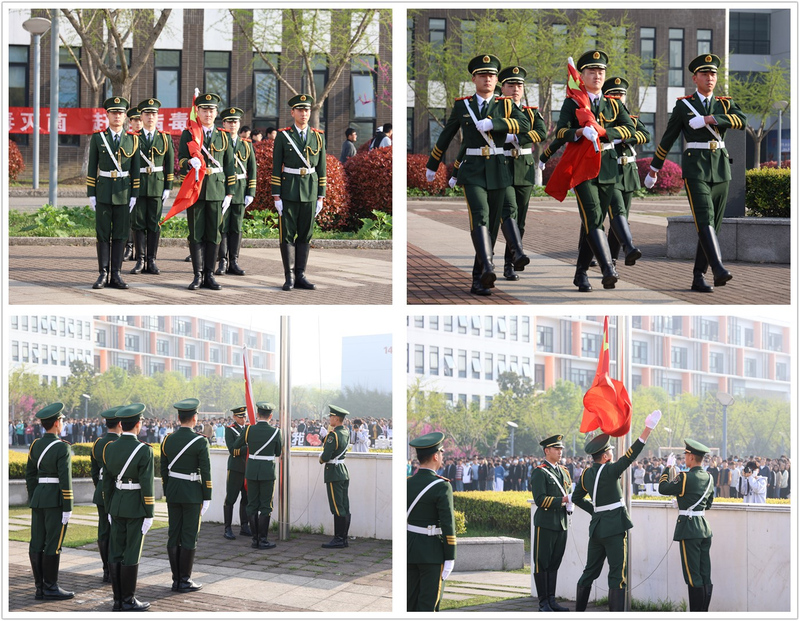 伴着激昂的《中国人民解放军进行曲》,国旗班迈着铿锵的步伐,护送国旗入场。鲜艳的五星红旗在全体师生的庄严注目下冉冉升起,迎风飘扬在广场的上空,如同新生的朝阳,承载着活力与希望。