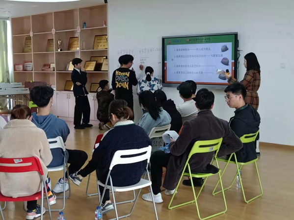 3月24日下午,我校“3.20咱爱您”心理健康教育周活动计划中的班级心理委员和辅导员主题教育活动观摩会如期举行。学生健康中心陈祎雯和沈方瑛两位老师,分别带来了《宿舍你我他 沟通零距离——大学生宿舍人际关系训练》和《美丽不困惑 智慧不迷茫——恋爱面面观》两个主题团体辅导。