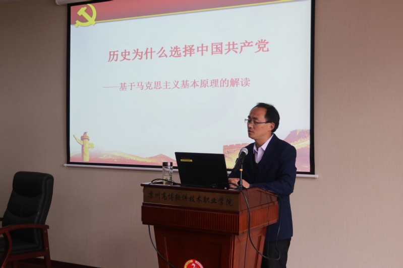 吴歧范老师在专题党课上作了“历史为什么选择中国共产党—基于马克思主义基本原理的解读”专题讲座,生动鲜活地讲述了中国共产党的百年风云历程。此次党史学习教育专题党课分为两个部分,一是中国近现代选择马克思主义的必然性,二是中国共产党的创立及伟大奋斗历程。吴老师从近代中国的“千年局变”、救亡之路的艰辛探索、马克思主义传入中国三个方面深刻阐述了中国近现代为什么选择马克思主义,全面分析了中国共产党创立的阶级基础、思想基础、组织基础。