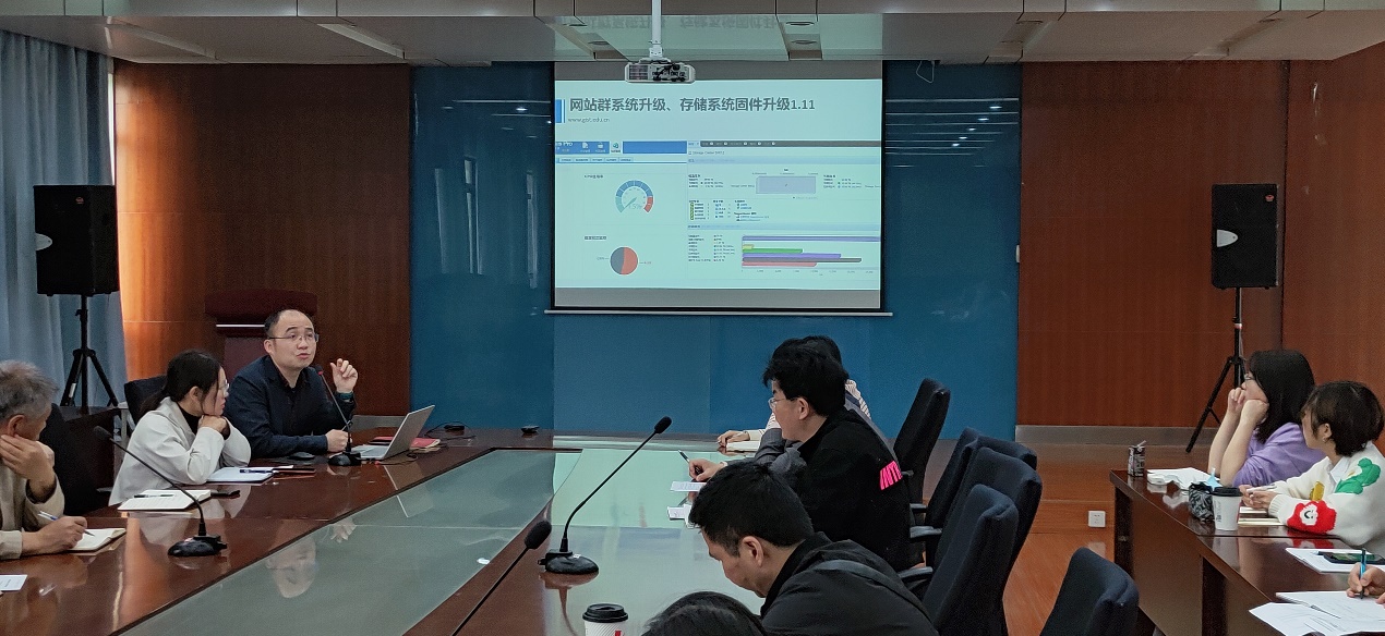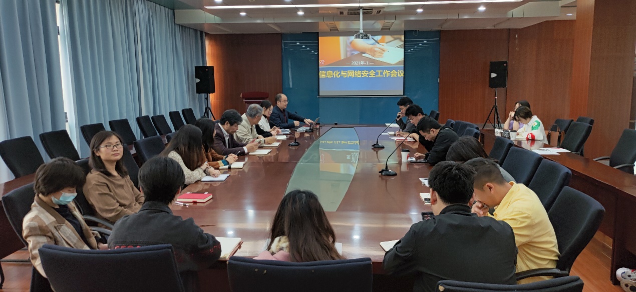 会上,首先由信息中心赵满群主任做校园信息化建设与网络安全工作汇报,赵主任从工作概况、建设成果、重点任务、安全管理四个方面介绍了智慧校园建设目标,分享了近期智慧校园建设成果:入选2020年省智慧校园、省市教育信息化先进个人、省智慧校园课题立项、教育网络带宽升级、视频会议系统网络升级改造、智慧教室建设并投入使用等,强调了下一阶段重点任务:教师信息化能力培训、数字图书馆建设、数据灾备系统建设、校园网络安全构建、新校区校园网络基础建设等,最后就网络安全管理提出了要求。