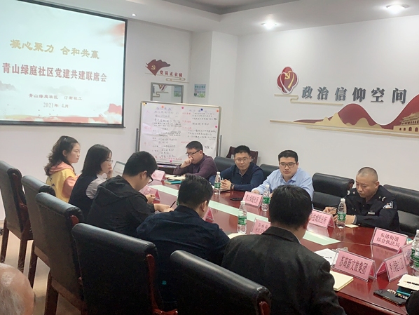 联席会由青山绿庭社区党支部书记汤志炜主持,参加会议的有已建立共建联系的单位--科技城管委会社会事务局、青山绿庭社区、科技城派出所、东渚街道综合执法局、审协江苏中心、江苏银行科技城分行、中科院地理研究所、青山绿庭幼儿园、苏州市汀斯社工师事务所等的代表,和今天签约共建的三家单位--苏州高博软件技术职业学院国际商学院、苏州文体旅局、苏高新文旅集团的代表。