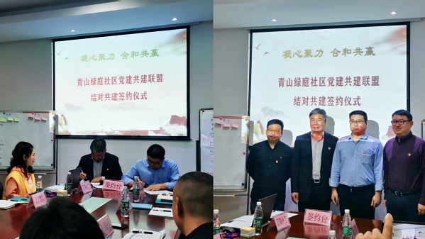然后,在各单位的共同见证下,三家新共建单位与青山绿庭社区签订党建共建协议,国际商学院王则斌院长、总支书记代表学院签署共建协议。