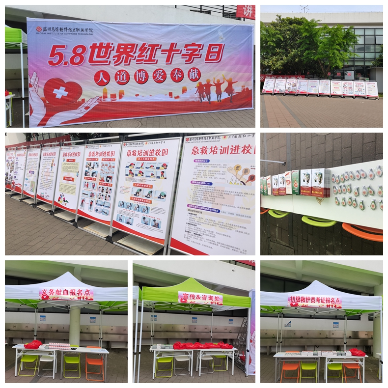 5月8日中午,苏州高博软件技术职业学院红十字会的志愿者顶着骄阳 ,在校内开展“5.8国际红十字日”广场宣传,向大家宣传和推广了急救培训知识,同时也吸引了不少的师生报名参加初级救护培训以及本月底的义务献血活动。