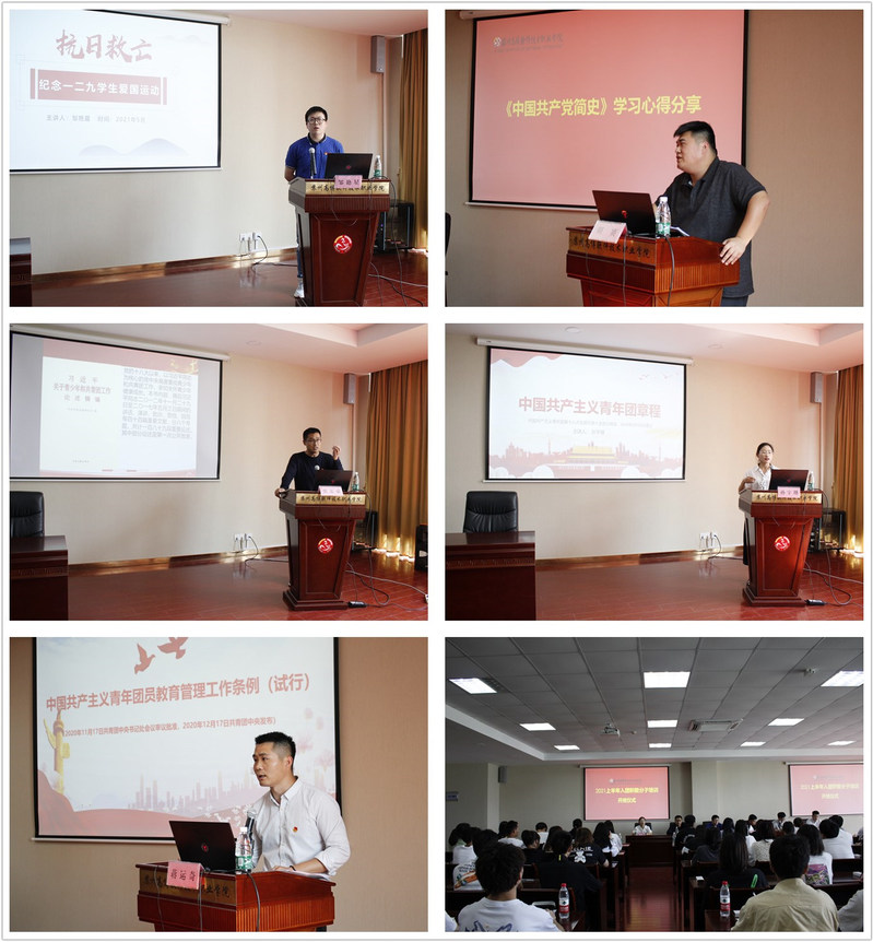 开班仪式后,团课培训班正式开始。本期团课共分为五讲,第一讲《抗日救亡——纪念一二九学生爱国运动》由邹艳星部长主讲,详细介绍了一二·九运动发生的起因以及事件经过,呼吁全体青年学生牢记历史,传承先辈精神,以火热的青春,做新时代的弄潮儿;第二讲《学习〈习近平关于青少年和共青团工作论述摘编〉》由张志豪老师主讲,从“为什么高度重视”、“培养什么人、怎样培养人、为谁培养人”和“我们应当怎么做”三个方面进行了详细解读;第三讲《学习〈团章〉》由孙宇珊老师主讲,从共青团的性质、发展史、行动指南、作用、入团条件以及团员应承担的义务、所享有的权利等方面做了详细讲解,引导同学们如何成为一名优秀的团员;第四讲学习《共青团员教育管理工作条例(试行)>》由蒋运奇老师主讲,从“团员日常管理的主要方式”、“团员的激励和评价”和“团员教育管理信息化”等九个板块带领同学们进行了系统的学习;第五讲《〈中国共产党简史〉学习心得分享》由胡赛书记主讲,以中国共产党党史和共青团史为主线,关注、解读了党史和团史的几个重要时间节点史实以及党史、团史中先进分子的责任和担当。