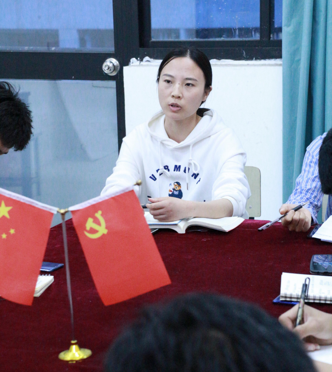 会议伊始,机电学院分团委书记孙宇珊老师结合习近平总书记“革命理想大于天”、“理想信念就是共产党人精神上的‘钙’,没有理想信念,理想信念不坚定,精神上就会‘缺钙’”等话语展开话题,她指出:一、作为新时代青年应当从自身学习,树立正确的价值观,坚定理想信念;二、作为新时代青年应当振兴中华,不能忘本,通过学习党史、青年大学习等措施不断提升自我;三、正值建党100周年,作为新时代青年应当致敬付出了时间、生命的先烈,深入了解历史故事;四、作为新时代青年应当勇于担当,养成知难而上的精神,既能保护自己,亦能保护他人。