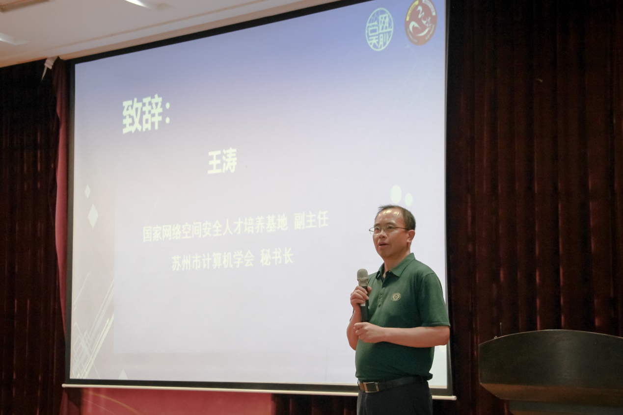 本次活动由中共苏州市委网信办主办,苏州高博软件技术学院信息与软件学院承办,苏州市计算机学会、苏州市人工智能职教集团和中国电子·苏州网安创新基地协办,现场约300名师生参加。活动伊始,苏州高博软件技术学院副校长陈家颐、苏州市委网信办网络安全和信息化协调处处长陆晓明、苏州市计算机学会秘书长王涛分别致辞。我校陈家颐校长指出,网络安全关乎着人民生活的各个方面,也是国家大力发展的一个行业。学校从人才培养的角度出发,立足职业教育的发展使命,聚焦市场和企业,积极联合企业发展专业,打造具有高博特色的网络安全专业。网信办陆处,解读了国家对网络安全的相关政策,介绍了苏州市委、网信办在网络安全意识普及的一些列活动,阐述了网络安全的重要性和紧迫性。计算机协会的王秘书长主要介绍了计算机学会在网络安全方面的一些列活动和网络安全认证的相关内容。在此次活动中,还举行了2020年“高博杯”网络安全知识竞赛颁奖仪式,并启动了2021年“高博杯”网络安全知识竞赛暨第二届全国大学生网络安全精英赛选拔赛报名。计算机学会秘书长王涛、中国电子项目经理王杰分别进行了《网络安全行业前景及人才需求》、《从网络安全到信息技术应用创新》主题分享,高博毕业生、蓝皓科技网络安全工程师蔡琪以《工程师进校园——技术为功,实战为王》为主题分享工作案例。最后,高博副院长陈家颐、市委网信办处长陆晓明、苏州高新区工委网信办专职副主任沈一鸣、高博信软学院院长孙涌、苏州市计算机学会秘书长王涛,苏州市计算机学会网络安全专委会主任乐德广共同开启了网安先锋特训营。