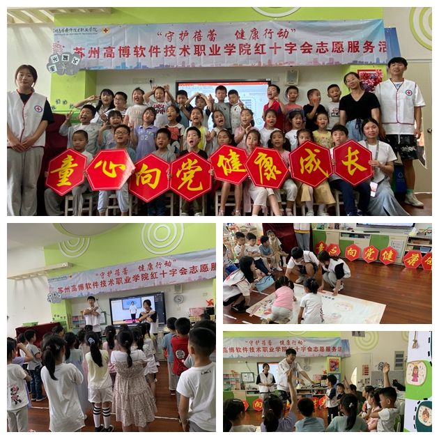 为庆祝中国共产党成立100周年,让红色基因、革命薪火代代传承,培养担当民族复兴大任的时代新人,引导青少年听党话、感党恩、跟党走,厚植爱党爱国爱社会主义情怀,6月9日下午,我校红十字会志愿者在高新区东渚实验幼儿园开展了“童心向党 健康成长”主题志愿服务。