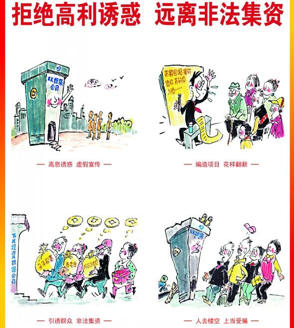 4、要增强参与非法集资风险自担意识。非法集资是违法行为,参与者投入非法集资的资金及相关利益不受法律保护。因此,当一些单位或个人以高额投资回报兜售高息存款、股票、债券、基金和开发项目时,一定要认真识别,谨慎投资。